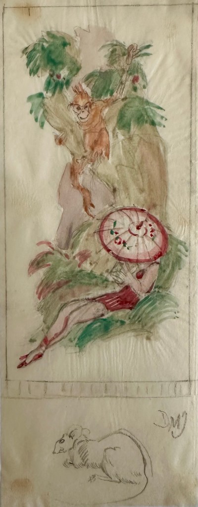 „Liegende Frau mit Affe und Maus“