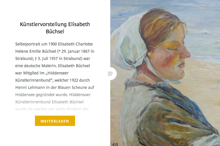 Büchsel, die zunächst von den Einheimischen als „neumodisches Malweib“ misstrauisch beäugt wurde, entwickelte sich zur fleißigsten Malerin ihrer norddeutschen Heimatregion und gilt schon lange als „Die Malerin von Hiddensee“. Ihre Schöpfungen befinden sich außer im Privatbesitz vor allem in den Heimatmuseen von Göhren sowie Kloster, in den Kulturhistorischen Museen von Stralsund sowie Rostock und im Staatlichen Museum von Schwerin. Elisabeth Büchsel wurde am 29. Januar 1867 in Stralsund geboren. Sie war das zweite von sechs Kindern ihrer Eltern. Ihr Vater genoss als Altermann der Stralsunder Gewandschneider sowie Tuchhändler in der Hansestadt ein hohes Ansehen und galt als überaus wohlhabend.